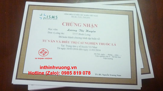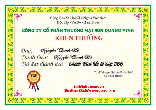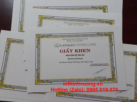 In Thịnh Vượng đơn vị chuyên in giấy khen certificate, thiết kế bằng file corel và file AI, thời gian in nhanh, có ghép tên lấy ngay trong ngày.