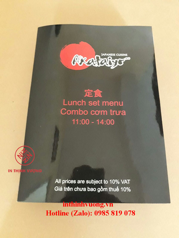 In Thịnh Vượng đơn vị chuyên in menu để bàn đẹp, chống thấm nước, giá thành rẻ cho nhà hàng.